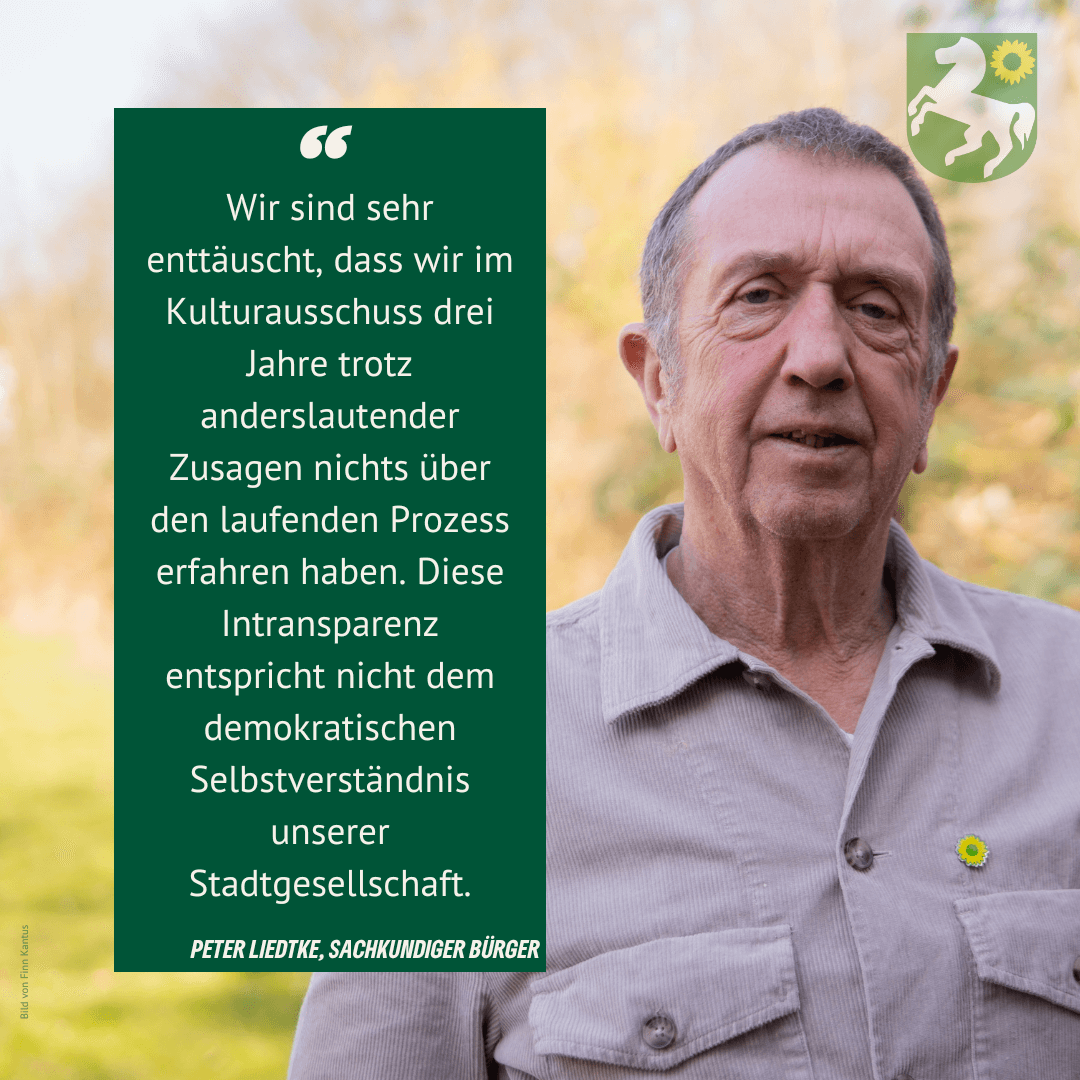 „Wir sind sehr enttäuscht, dass wir im Kulturausschuss drei Jahre trotz anderslautender Zusagen nichts über den laufenden Prozess erfahren haben. Diese Intransparenz entspricht nicht dem demokratischen Selbstverständnis unserer Stadtgesellschaft.”, sagt Liedtke.